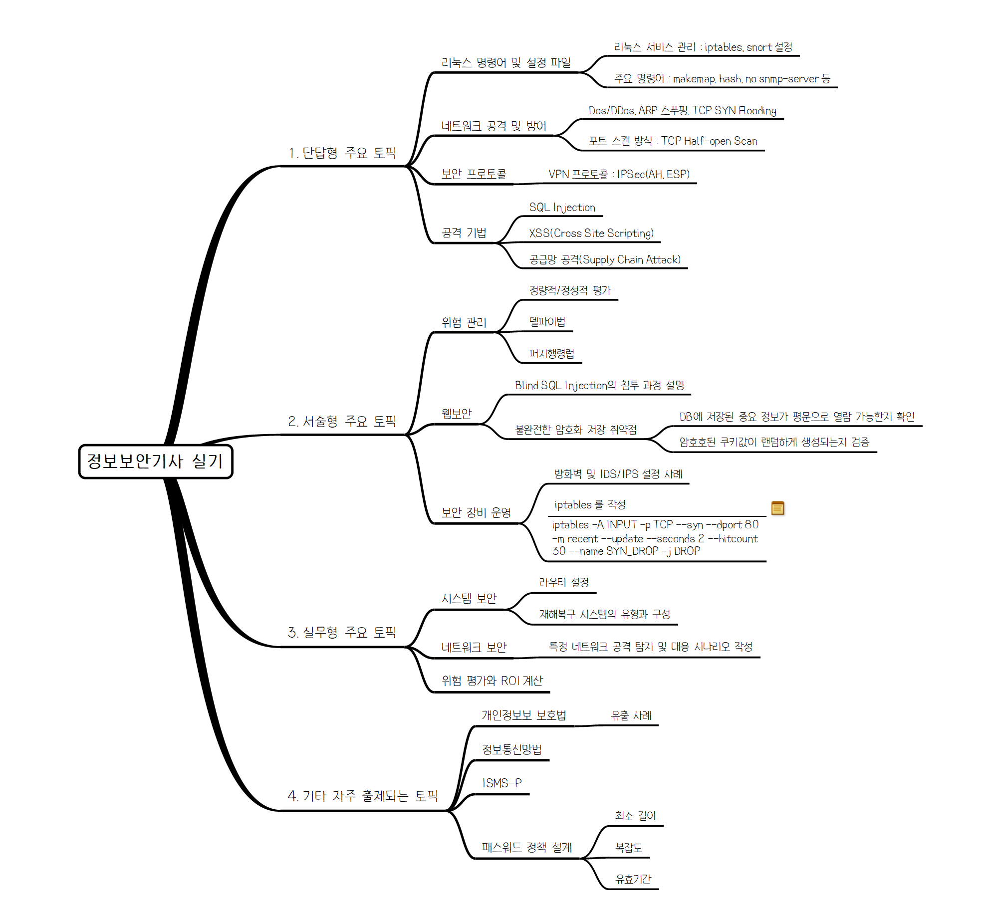 정보보안기사 실기를 대응하기 위해 단답형/서술형/실무형으로 정리 중